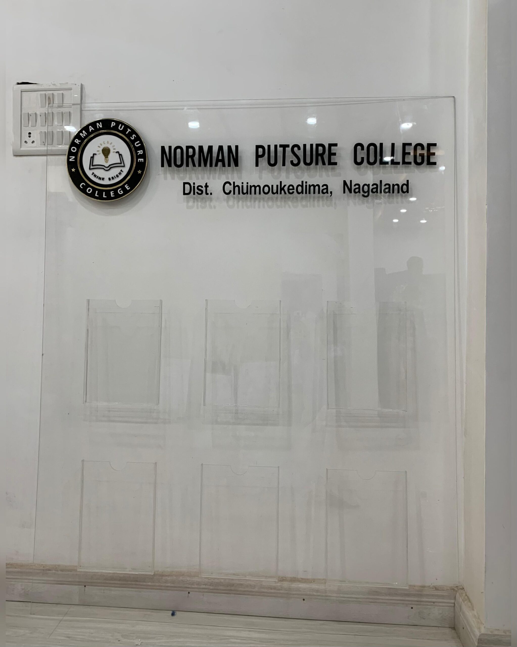 Custom Acrylic brochure and calendar holder for Norman Putsure College, Chumoukedima, Nagaland.